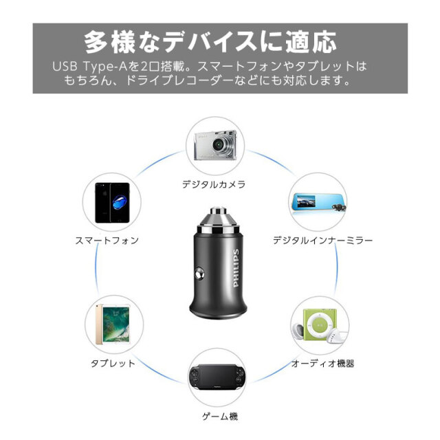 | 出力 (Type-A) | 5V/2.4A 2ポート合計最大出力 24W |