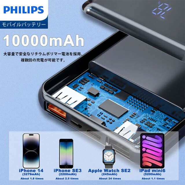 10,000mAh の大容量で安全なリチウムポリマー電池を採用。