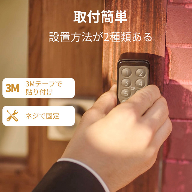 スマートロックとキーパッドを設置すれば、重たい金属のカギを使わず、ドアを解錠できます。