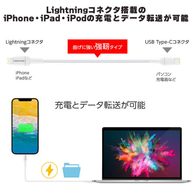 ・Lightningコネクタ搭載のiPhone・iPad・iPodの充電とデータ転送が可能
