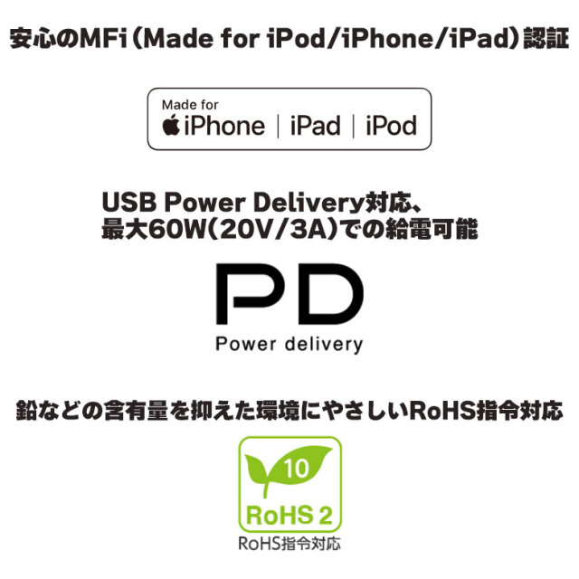 | コネクタ形状 | USB Type-C(オス) / Lightningコネクタ(オス) |