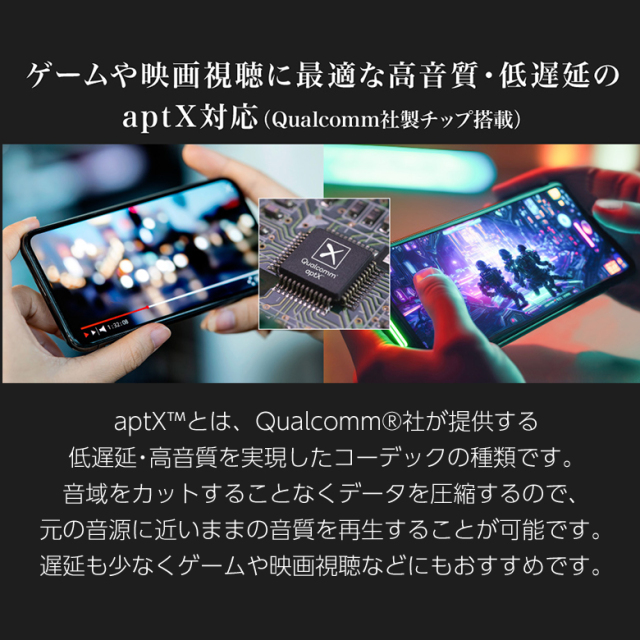 ゲームや映画視聴に最適な高音質・低遅延のaptX対応