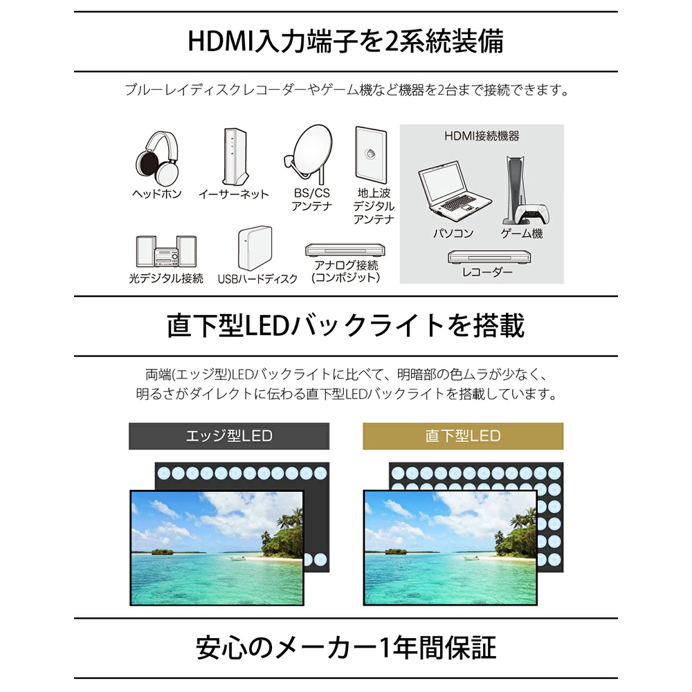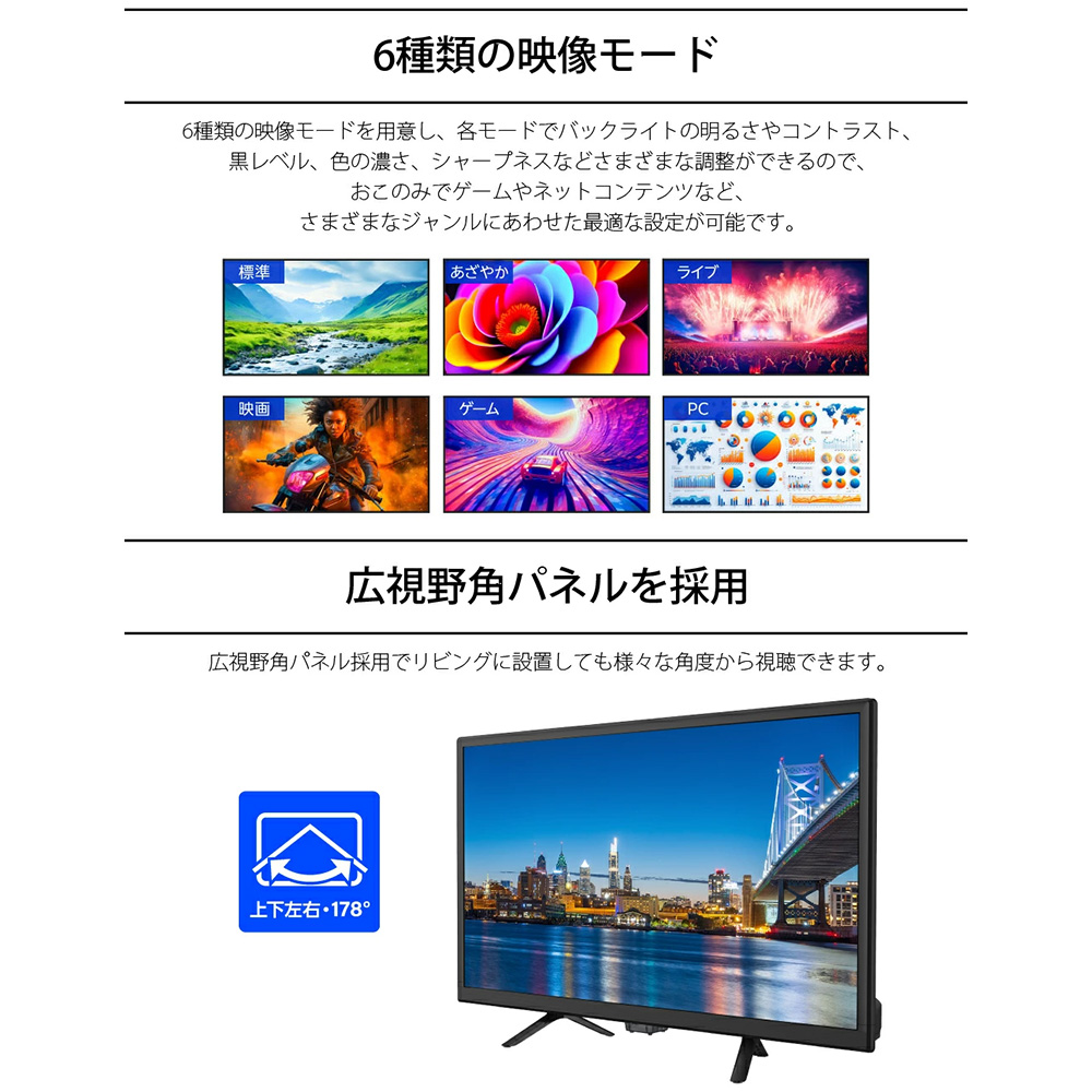 【アウトレット】24型液晶テレビ 地上デジタル BS CS HD 高画質 広視野角 外付けHDD対応 HDMI×2 裏番組録画 Wチューナー 直下型LEDバックライト 1年保証 一人暮らし セカンドテレビ 24インチ 箱損 FOC GH-TV24B-BK